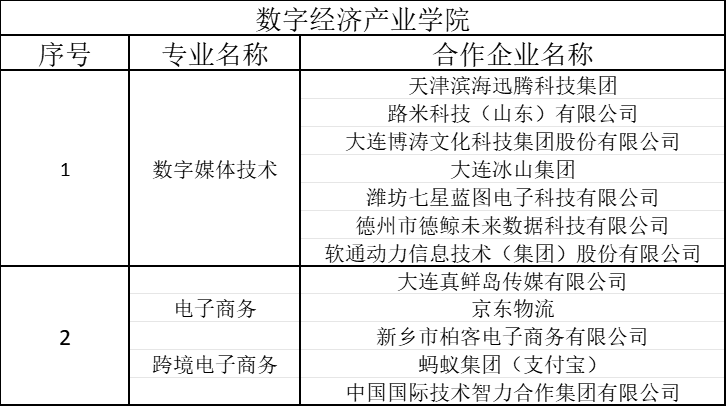 数字经济产业学院合作企业一览